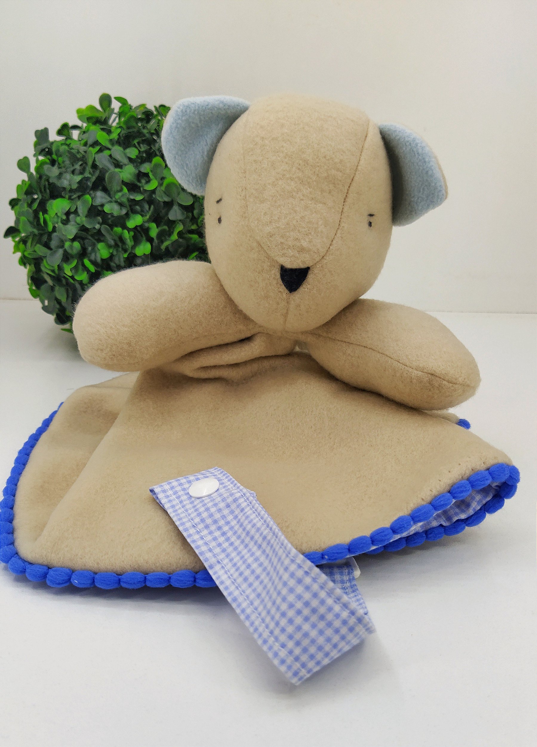Produzida com microsoft e tricoline (tecidos antialergicos) e com detalhes costurados e super seguros.